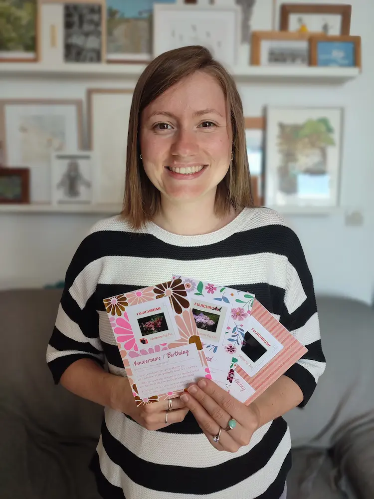 Installée tout près de Lyon, je fabrique chaque carte à la main à partir de vraies diapositives vintage, chinées une à une pour leur lumière et leur poésie.