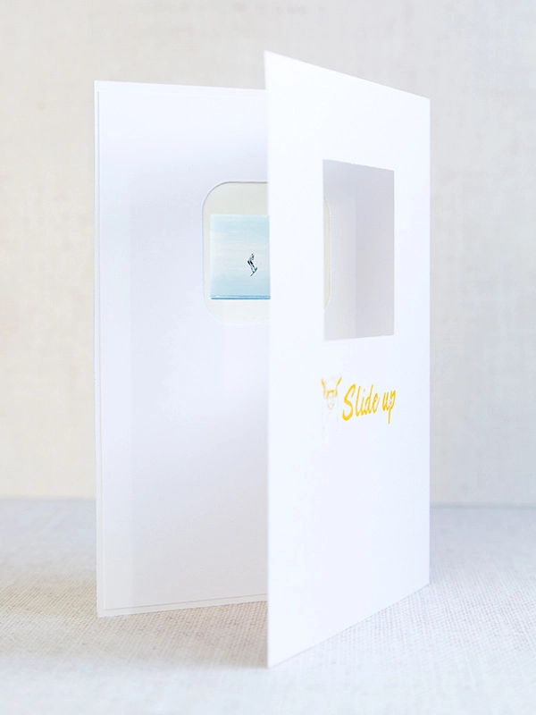 De la sélection de la diapo au tampon final, découvrez (presque) tous les secrets de fabrication d’une carte Slide up.