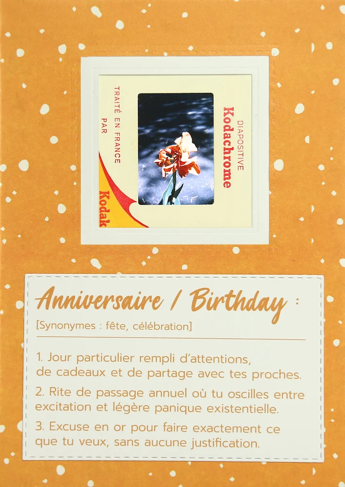 Célébrez un anniversaire plein de chaleur et de couleur grâce à cette carte originale faite main à partir d’une véritable diapositive.