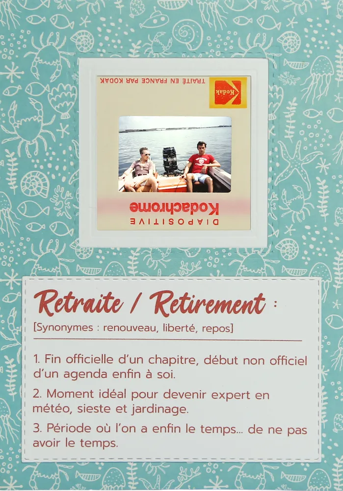 Avec cette carte fabriquée à partir d’une authentique diapositive, souhaitez une retraite bercée par le calme de l’horizon. Cap sur la liberté, le vent doux et les journées sans heure.