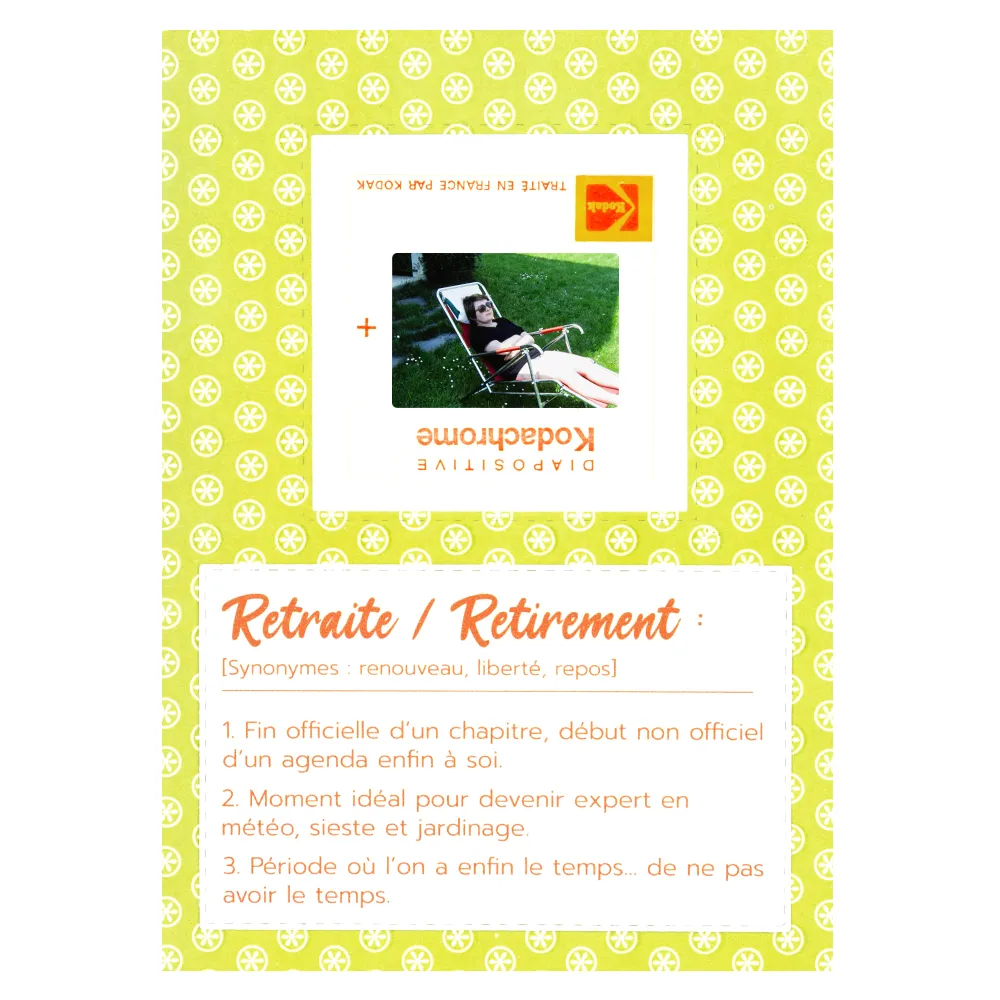Pause bien méritée capturée sur une véritable diapositive ancienne. Une scène douce et insouciante, parfaite pour souhaiter une retraite sous le signe du farniente et de la liberté retrouvée.