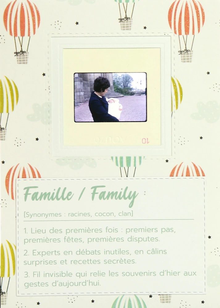 Célébrez la magie des premiers instants grâce à cette carte originale faite main à partir d’une diapositive.