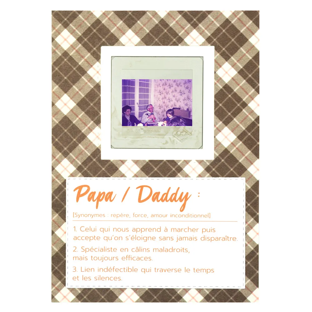 Chaque carte Slide Up est réalisée à la main, dans mon atelier à Trévoux, à partir de véritables diapositives anciennes, chinées pour leur lumière et l’émotion qu’elles dégagent. Le papier est choisi avec soin pour mettre en valeur la transparence et les teintes d’origine de la diapo.