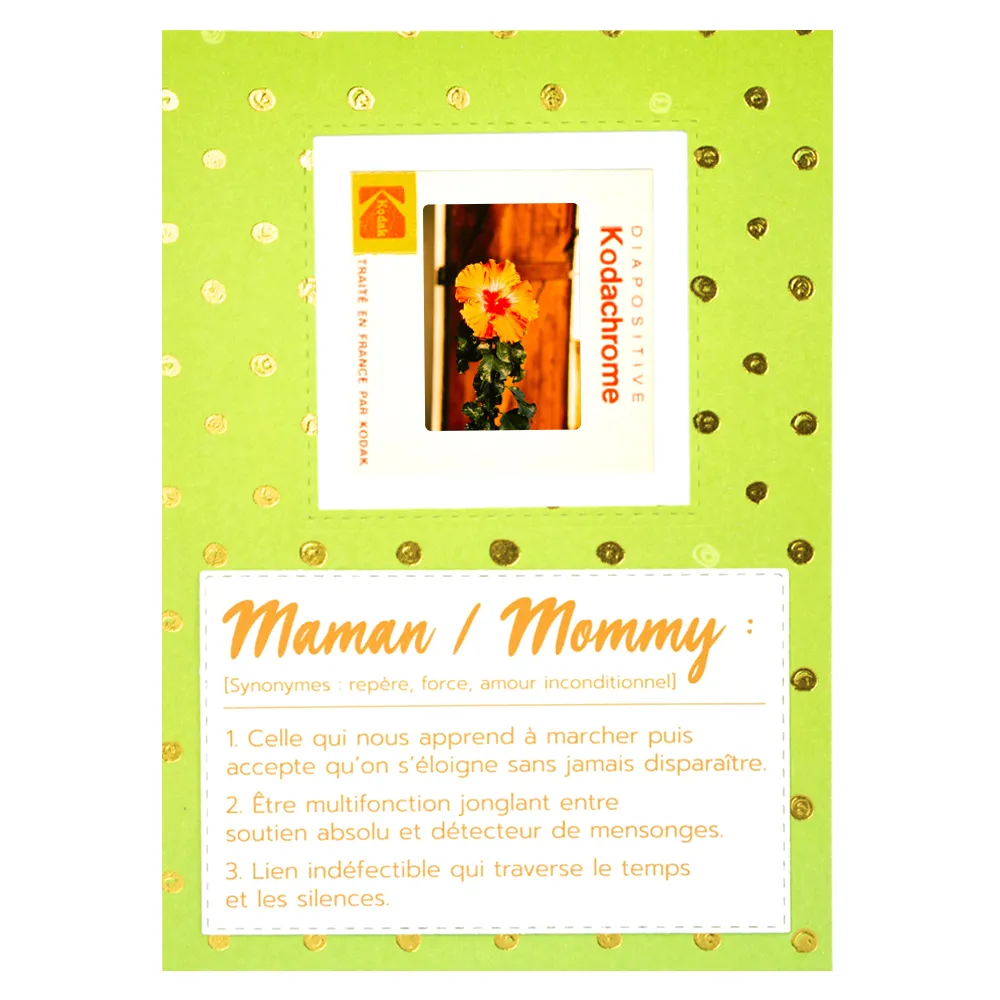 Avec cette carte faite main à partir d’une vraie diapositive, offrez une caresse fleurie.